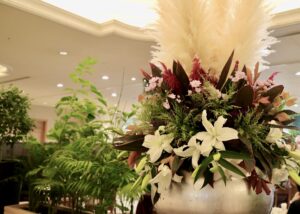 2年前、新たに迎えたミリオンバンブー。今回は、グリーンの実のような「フウセントウワタ」という植物と一緒に生けることも。風船のように膨らんだ実が可愛らしく、季節ごとに小さなピックを添えて楽しむこともあります。